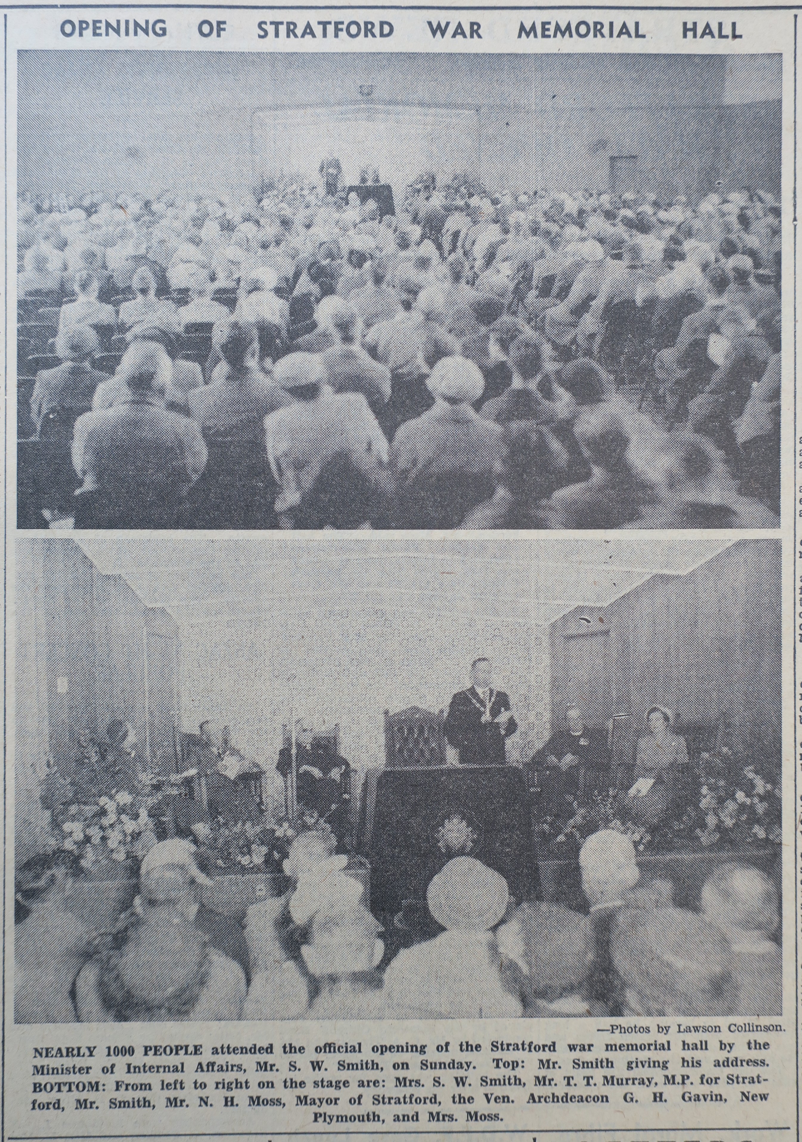 Stratford Memorial Hall opened (Taranaki Herald 26 April 1955)