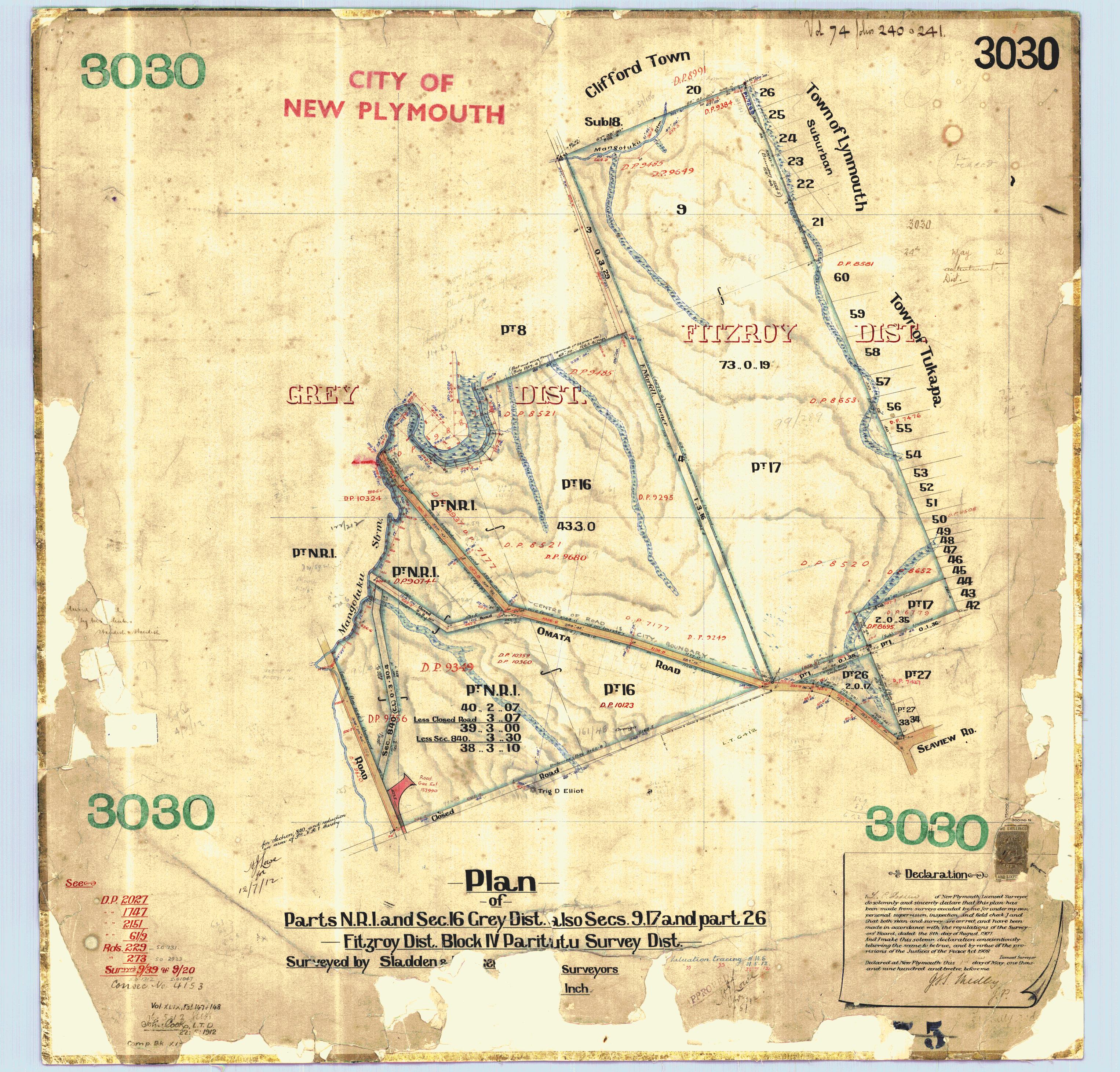 Taranaki DP3030 Clerke Place (1912) - ICS Pre 300,000 Cadastral Plan Index imaged by LINZ.
