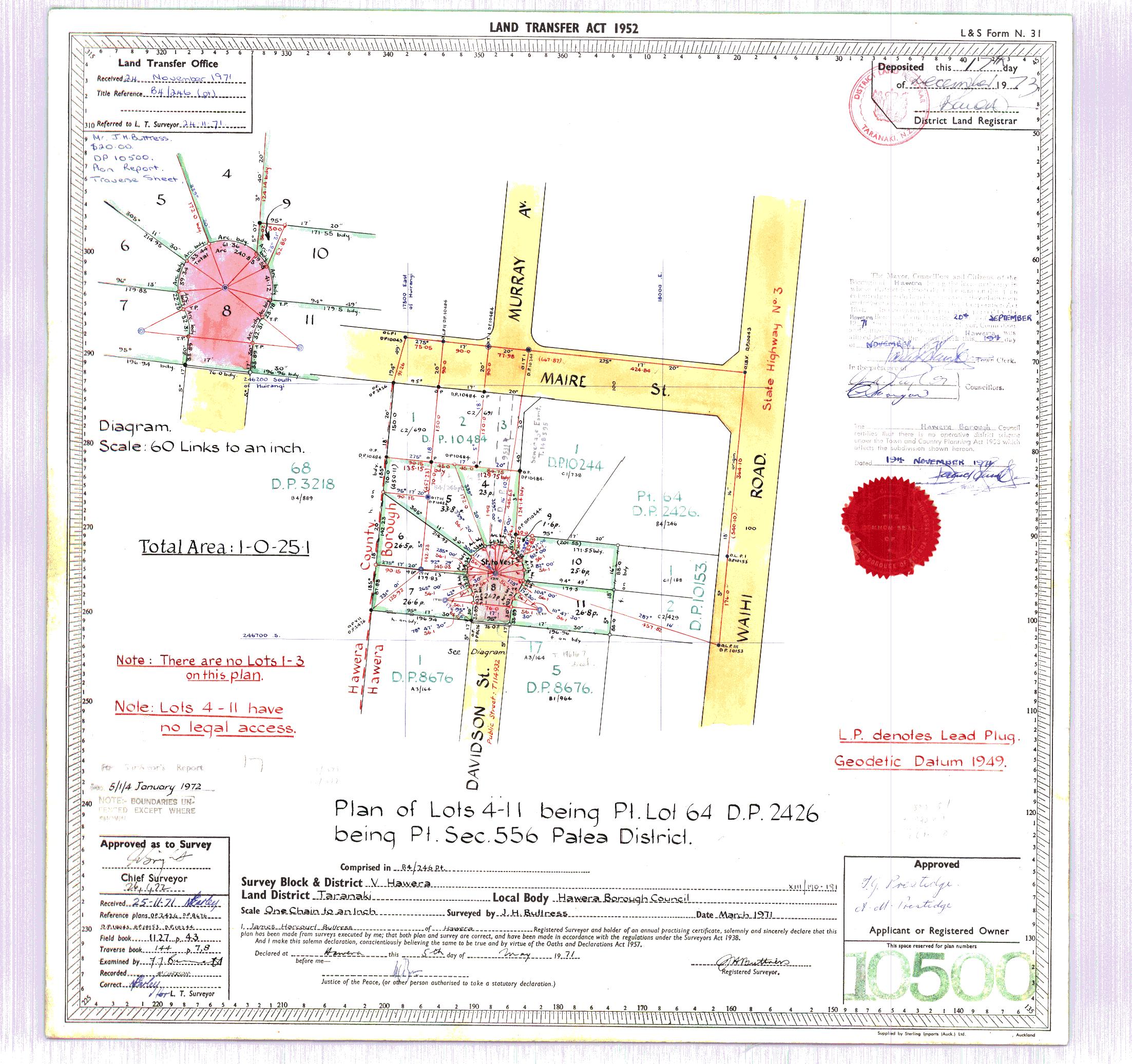 Taranaki DP10500 Sheet 1 (1971), ICS Pre 300,000 Cadastral Plan Index (Imaged by LINZ)