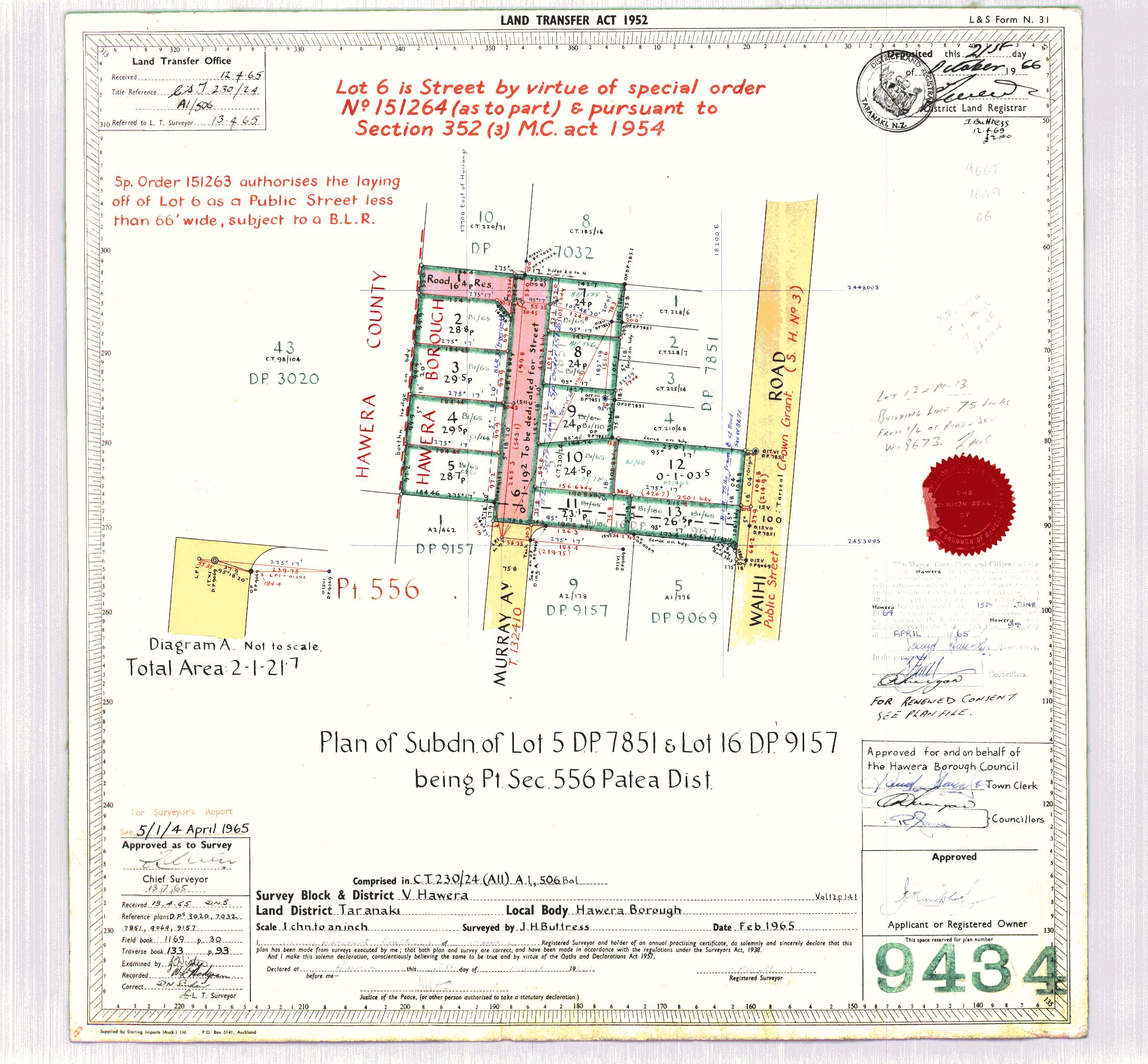 Taranaki DP9434 Sheet 1 (1965), ICS Pre 300,000 Cadastral Plan Index (Imaged by LINZ)