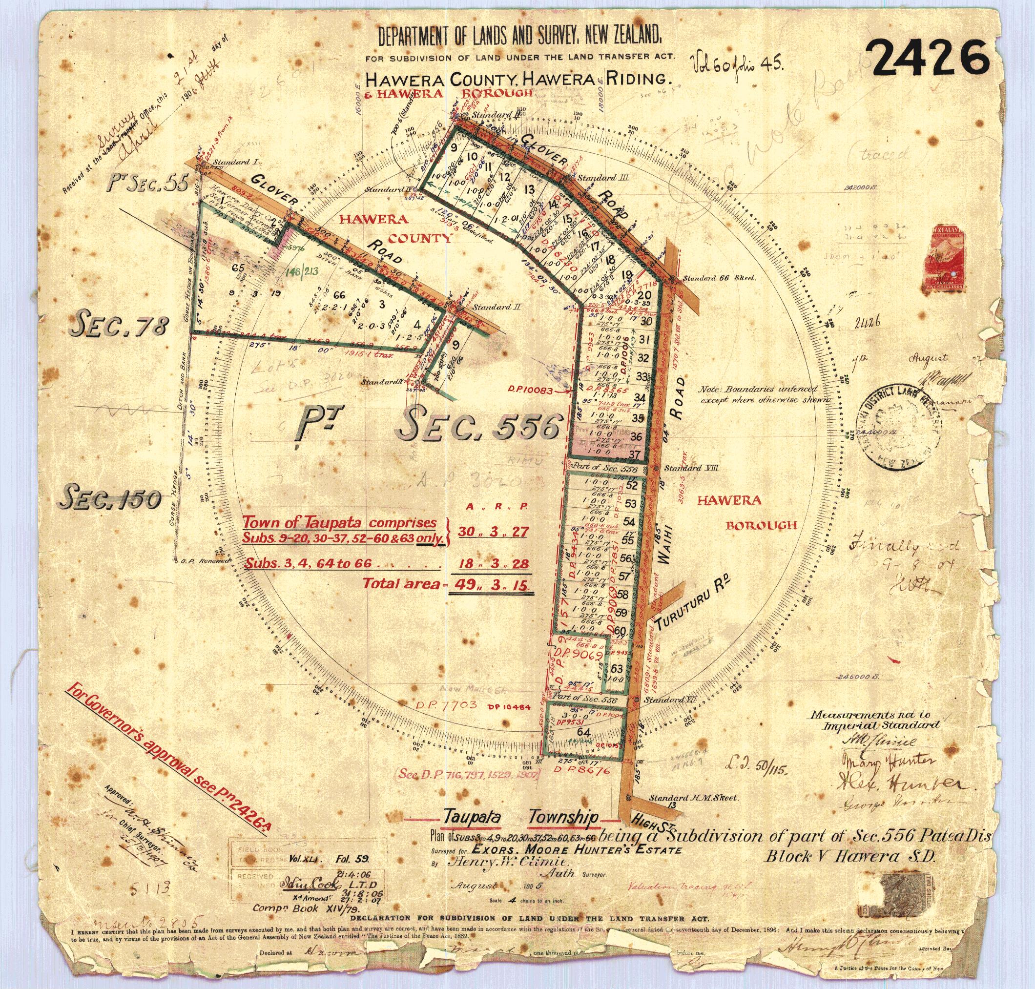 Taranaki DP2426 Sheet 1 (1905), ICS Pre 300,000 Cadastral Plan Index (Imaged by LINZ)