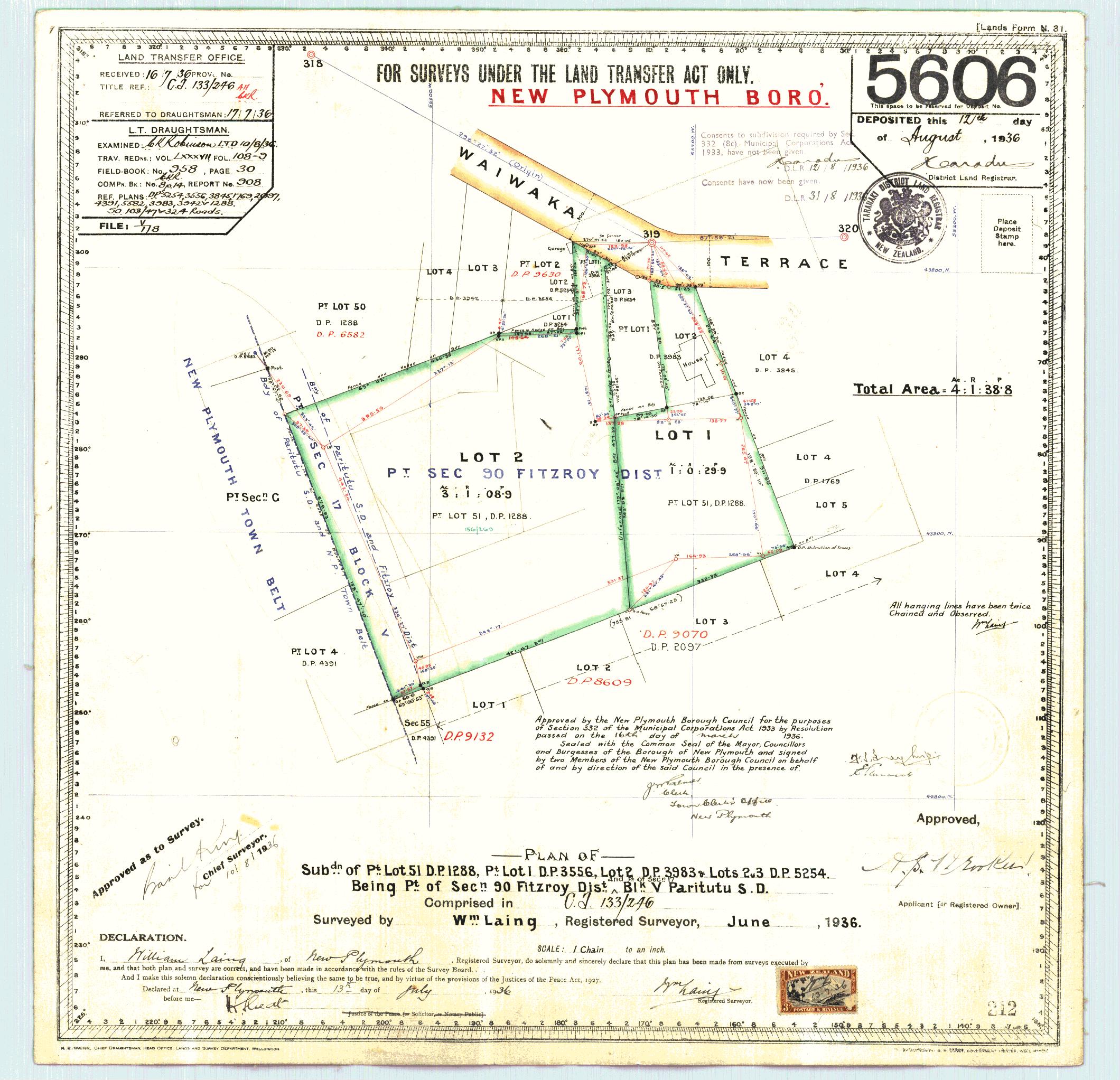 Taranaki DP5606 Sheet 1 (1936), ICS Pre 300,000 Cadastral Plan Index (Imaged by LINZ)