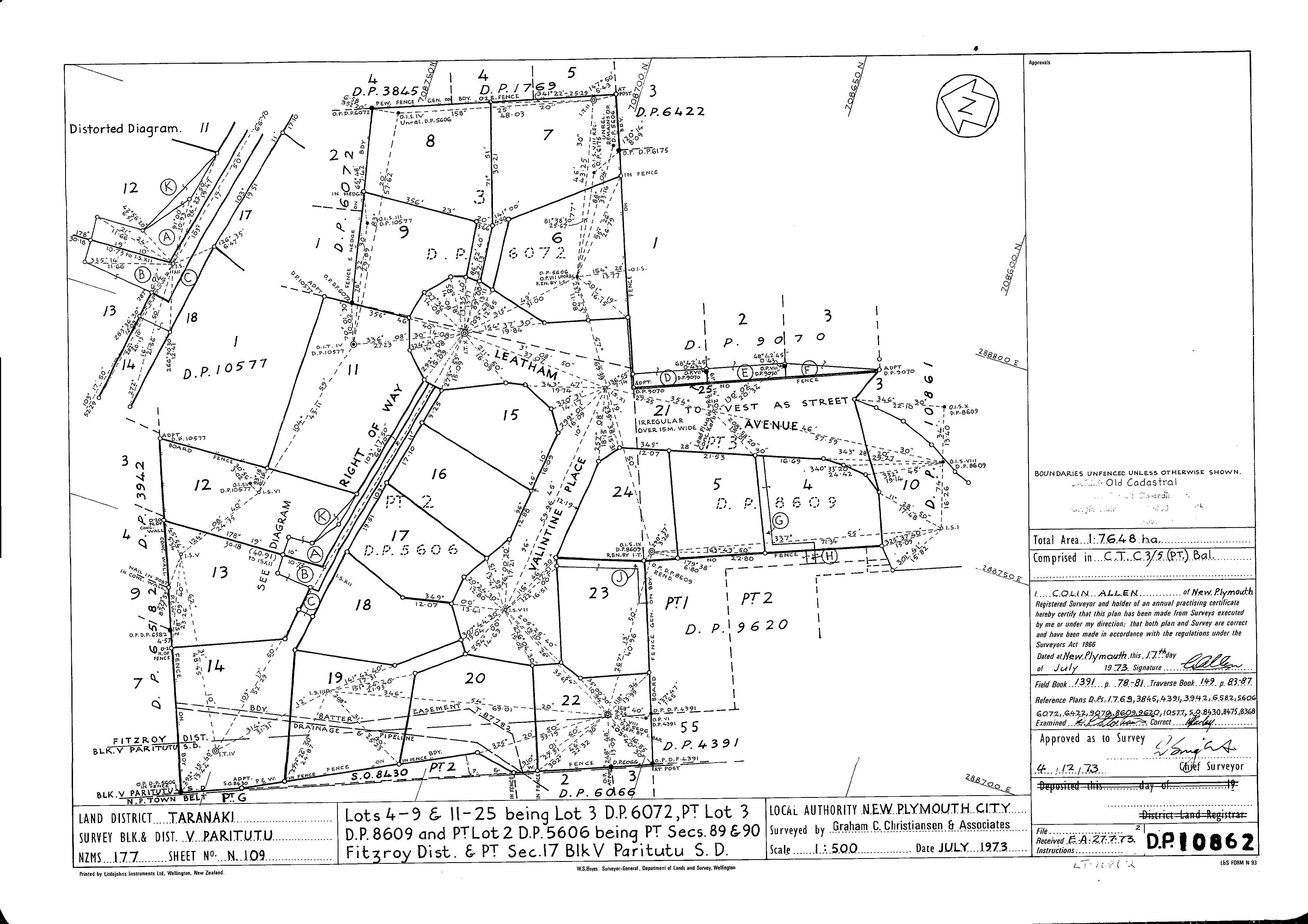 Taranaki DP10862 Sheet 1 (1973), ICS Pre 300,000 Cadastral Plan Index (Imaged by LINZ)